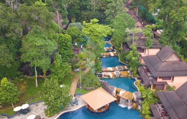 Khaolak Merlin Resort is a family-run eco-resort situated where the rainforest of South Thailand meets the Andaman Sea. We preserve the original landscape of the tropical rainforest by dedicating almost 50% of our 30-rai resort to nature, preserving over 250 native trees where over 150 species of wildlife have made their homes. Our design mimics the waterfalls and streams of nature so our guests can comfortably immerse themselves in a jungle retreat, complete with night safaris and bird watching tours.